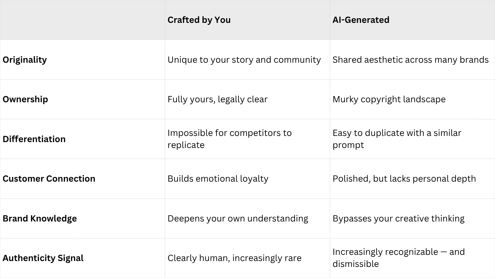 AI-generated graphics are a tool. Like any tool, they're only as good as the intention behind them. When small businesses outsource their entire visual identity to an algorithm, they trade away the one thing no competitor can copy: their story.